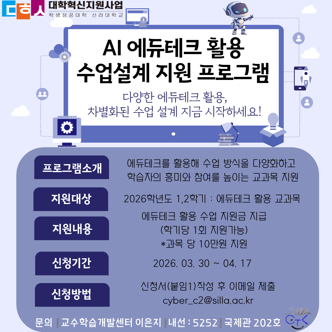 (붙임1) AI,에듀테크 활용 수업설계 지원 신청서 작성 후 cyber_c2@silla.ac.kr 제출 / 국제관 202호